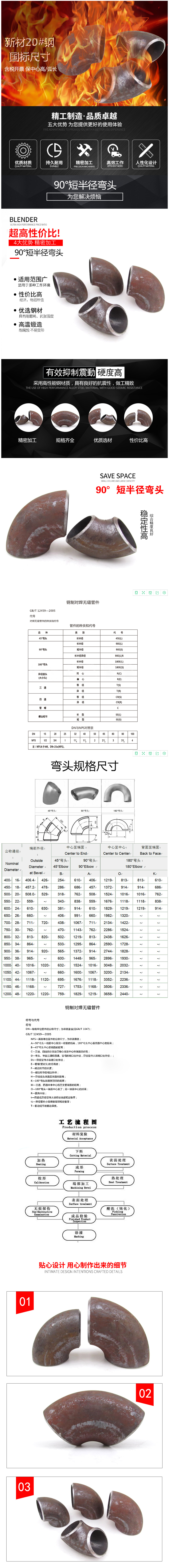 短半径弯头90度1倍焊接弯头90度1D弯头GBT12459-90E(S)冲压