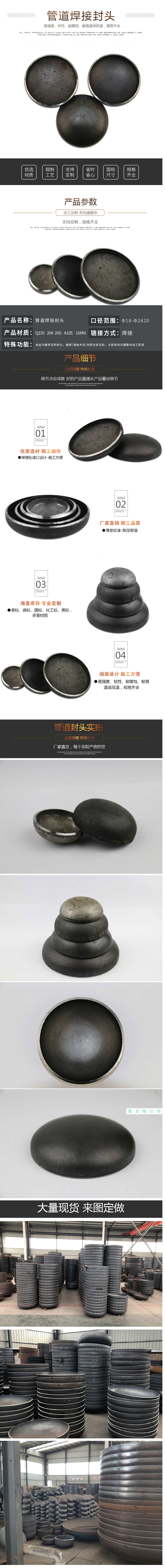 碳钢封头椭圆形管道锅炉铁水灌堵头大口径定做冲压管帽焊接封头盖
